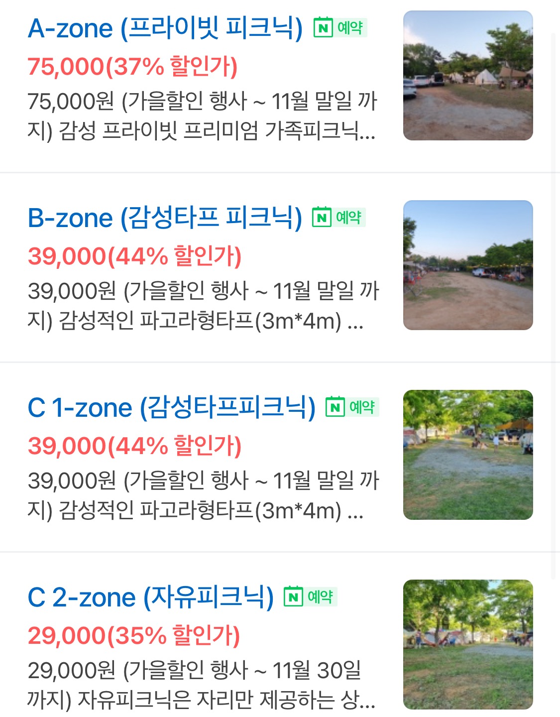 - 개인구역 제공 ( 차량주차, 그늘막, 텐트 설치, 타프, 취 사 ( 숯, 장작 ) 가능 )